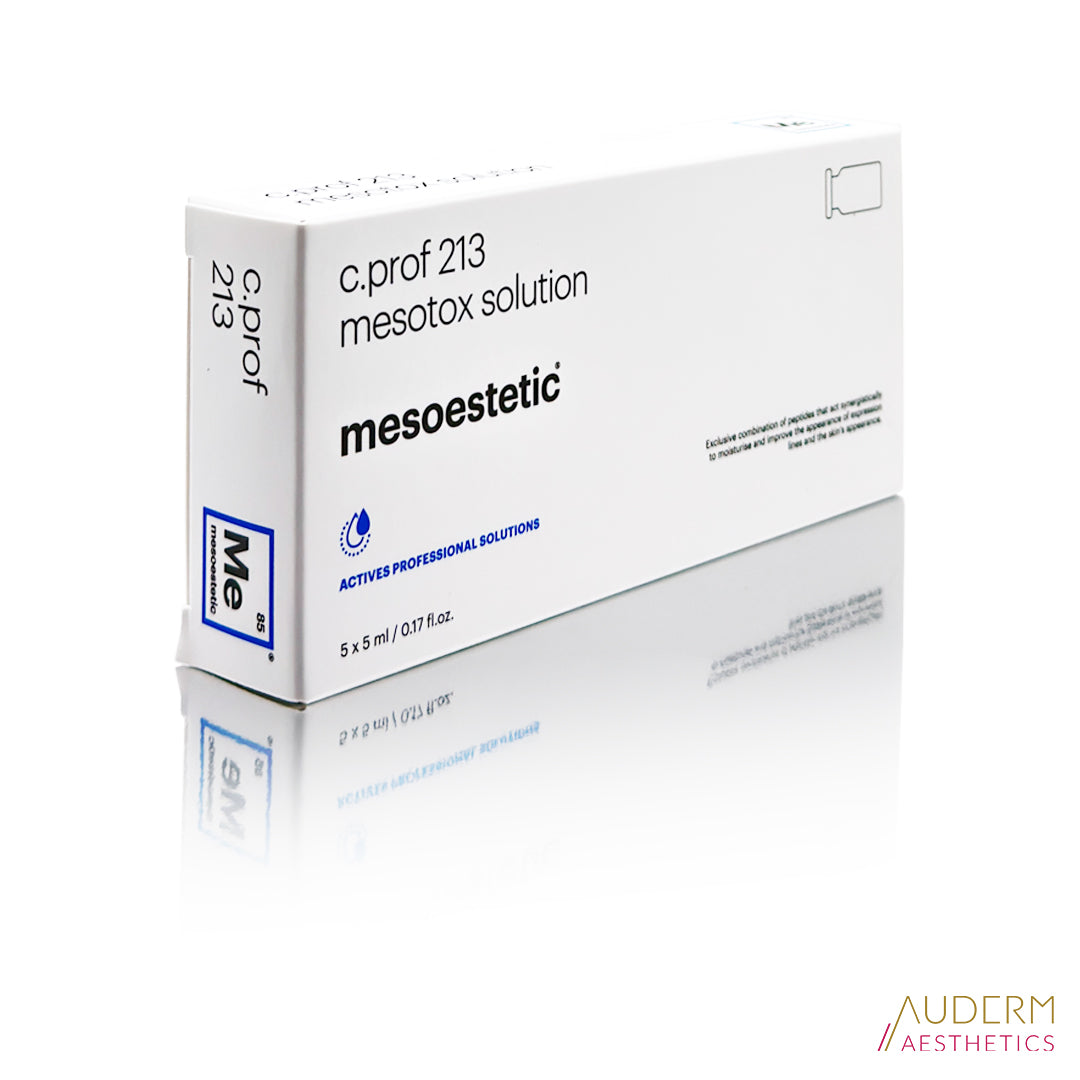 Die mesoestetic® c.prof 213 mesotox solution ist eine hochentwickelte Wirkstoffkombination, die speziell zur Glättung von Mimikfalten und zur Verbesserung der Hautelastizität entwickelt wurde. Sie wirkt entspannend auf die Gesichtsmuskulatur, reduziert feine Linien und verleiht der Haut ein ebenmäßiges, straffes Aussehen.