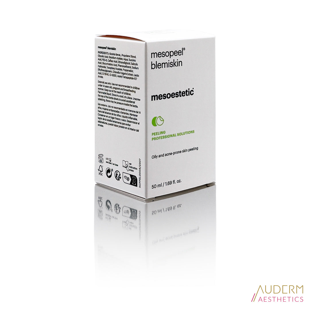 Das mesoestetic® mesopeel blemiskin ist ein spezielles chemisches Peeling, das gezielt bei unreiner Haut, Akne, Pickelmalen und verstopften Poren eingesetzt wird. Durch seine leistungsstarke Zusammensetzung reguliert es die Talgproduktion, befreit die Poren und reduziert Entzündungen.