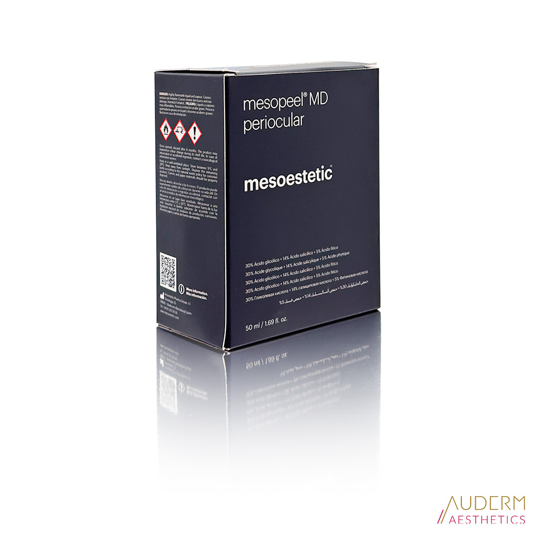Das mesoestetic® mesopeel MD periocular ist ein innovatives, professionelles Peeling, das speziell für die empfindliche Haut rund um die Augen entwickelt wurde. Mit seiner hochwirksamen Kombination aus Trichloressigsäure (TCA), Azelainsäure, Zitronensäure und Resorcin reduziert es effektiv dunkle Augenringe, Hyperpigmentierungen, feine Linien und Anzeichen von Hautalterung in der Periorbitalregion.